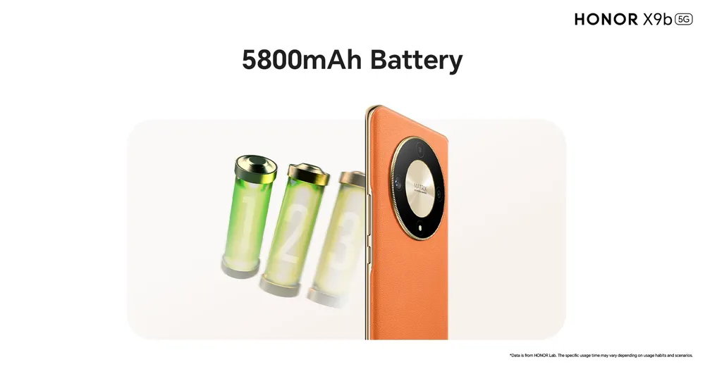 The HONOR X9b 5G comes with a large, yet light and thin 5800 mAh battery that can support up to three days of use on a single charge, resulting in a worry-free experience for any situation.